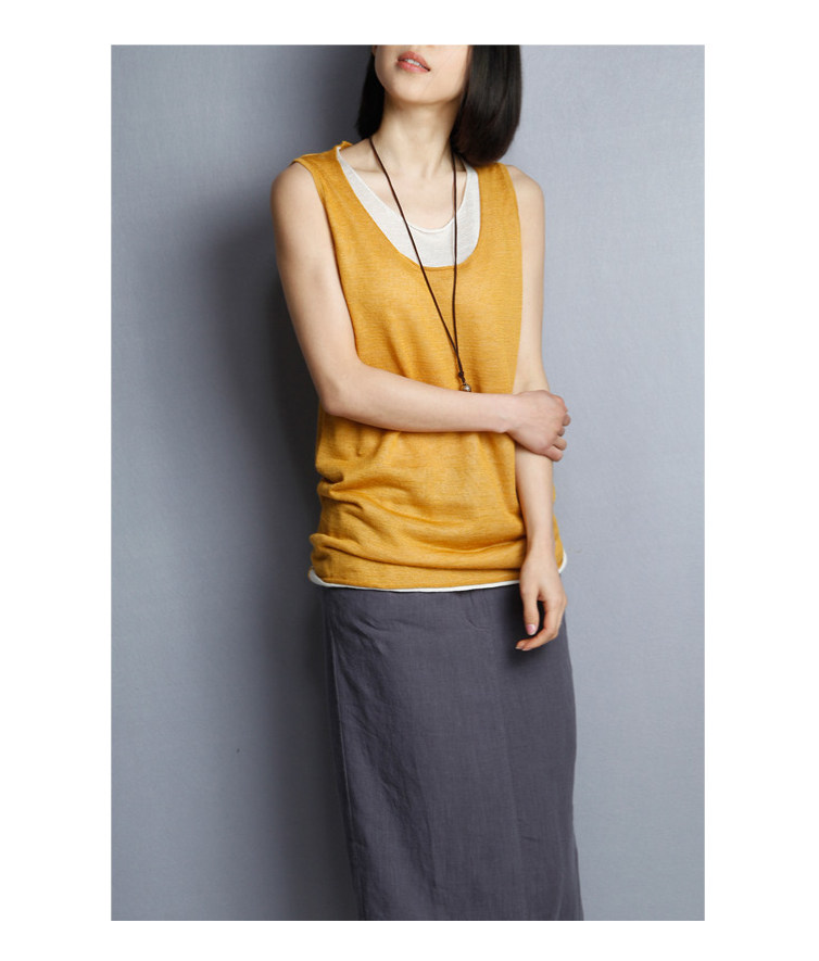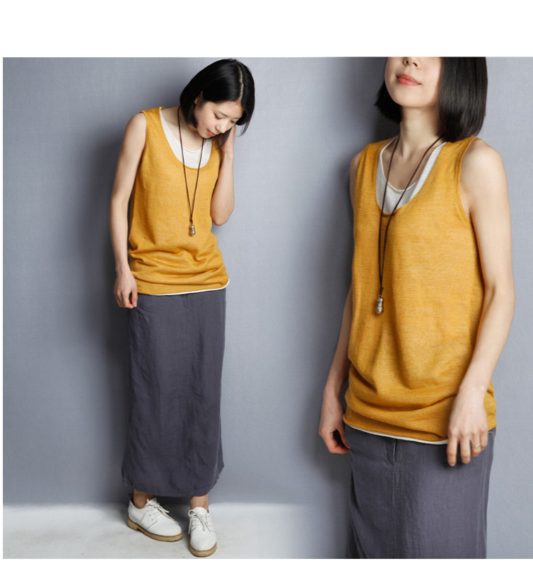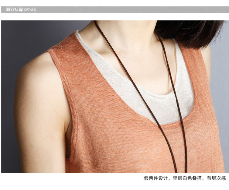 這款亞麻背心以亞麻線針織而成,不起球,不掉色,不縮水,不變形。可使體表溫度下降2-3攝氏度,很適合夏季穿著,而且寬鬆不緊繃。更是超級白搭款,搭開衫、搭休閒褲、短褲、裙子都很有休閒感。