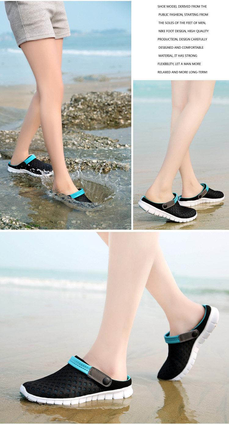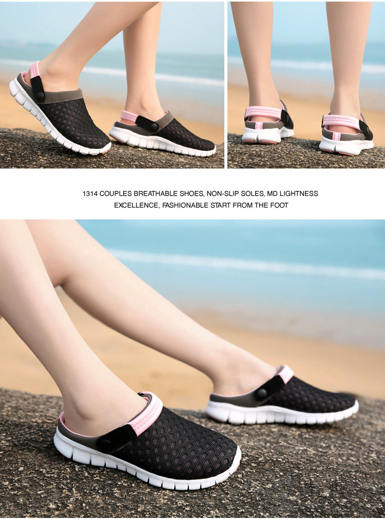韓版超輕透氣鳥巢情侶洞洞鞋_黑粉