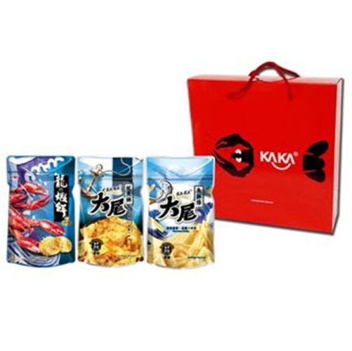 龍,蝦餅 特殊的泡泡餅皮,並運用特殊的技術將美味牢牢鎖在餅皮中,讓您每一口都能吃到蝦肉的鮮美!魷魚餅 的方形造型就像真正的魷魚片一樣,酥脆口感,鹹中帶甜,口感十足,宛如吃「醬烤魷魚」一般的享受,越嚼越香,每口皆是說不出來的好滋味,令人回味無窮! 魚酥條 的中空餅皮更加提升口感的酥脆,香鬆酥脆卻不失味覺上的深度,多重口感引人入勝!