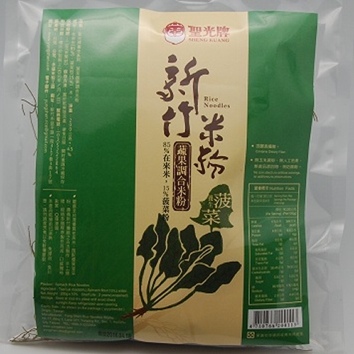 產品成分: 在來米(85%)、菠菜粉(15%)、水
