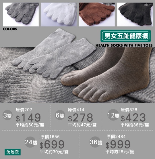 品名:儂儂男女五趾健康襪