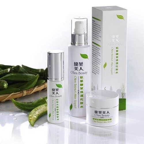 化妝水活性成份:秋葵精萃、秋葵多醣精萃、水解蠶絲蛋白、魚鱗膠原蛋白、傳明酸、玻尿酸、尿囊素、人參精萃、蘭花精萃、大馬士革奧圖玫瑰精油