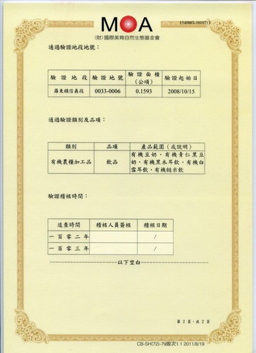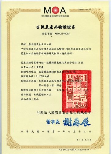 冬山鄉農會品質保證.MOA有 機驗證