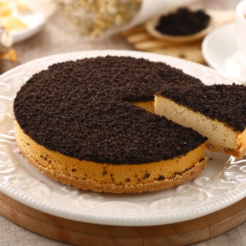 表面灑上巧克力餅乾屑,濃郁的焦糖味帶出乳酪的香氣,