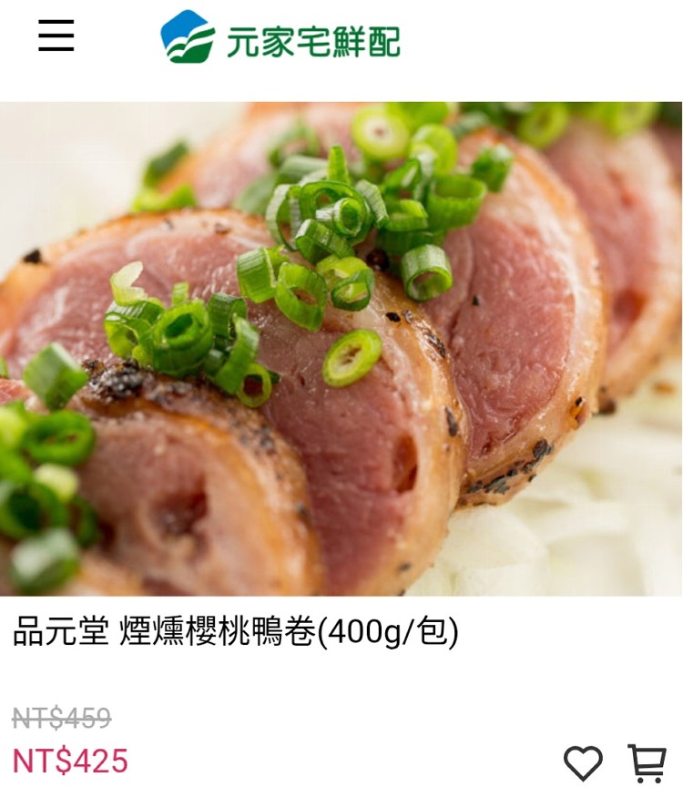 品元堂櫻桃鴨卷(葷) 400g(二條) 官網價折價後一條$424