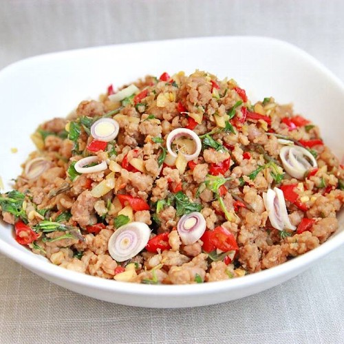 主材料:豬絞肉 新鮮碎香茅 蒜頭 辣椒 九層塔 泰國調味料