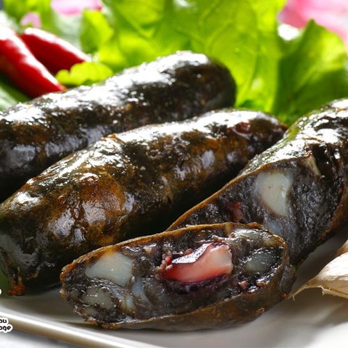 墨魚香腸,做法獨具一格,選用新鮮基隆港口的漁獲,將墨魚切成塊狀,以墨魚汁和墨魚打出來的墨魚漿輔以旗魚魚漿,每一口都吃得到Q彈軟嫩的墨魚塊,口味鮮甜,是非吃不可的招牌美食喔!