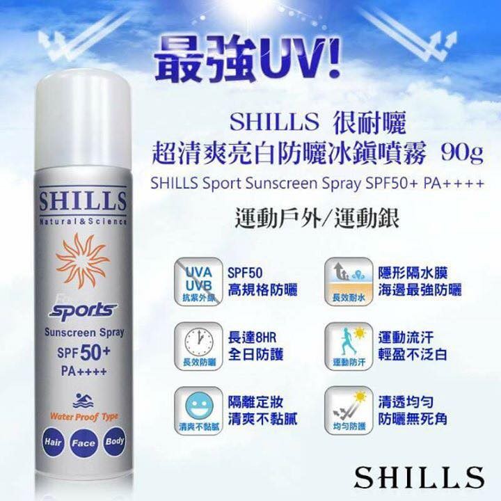 ╭☆°$ ↘ ↘團°☆╮SHILLS 很耐曬 超清爽淨白防曬冰鎮噴霧 90g SPF50+ PA++++(運動戶外)(運動銀)