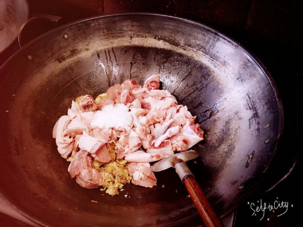 取適量薑母鴨肉塊倒出至湯鍋,加水或米酒