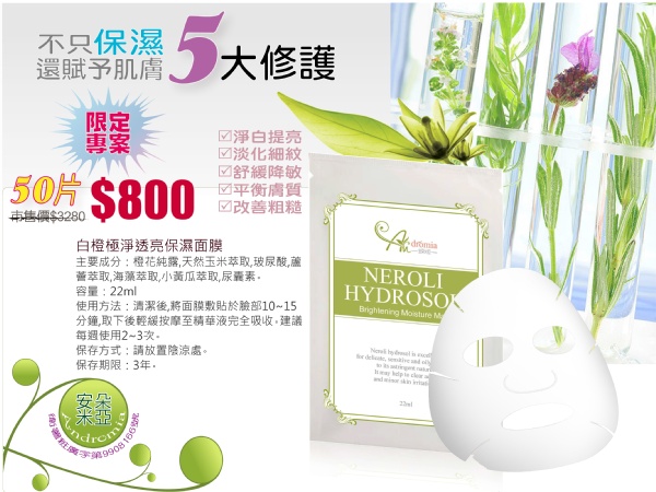 高效保濕解除肌膚乾渴現項,讓肌膚全天候飽水不乾燥,自然植物保濕配方,肌膚舒緩無負擔,有效改善暗沉、蠟黃、無光采肌膚瞬間提升明亮度。