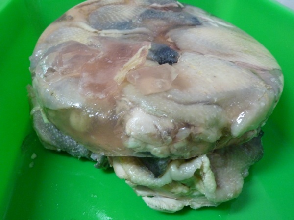主要以土雞(放山雞)、仿土雞為主要食材,這類雞以放養為主,活動面積大,比較不會得傳染病(雞瘟),除了大家所熟知肉品健康、安全、好吃外,膠質特別豐富(圖片透明物就是膠質)。