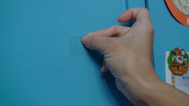 用手輕輕一壓,魔利貼就會發揮作用,再度發揮雙面膠的功能了!