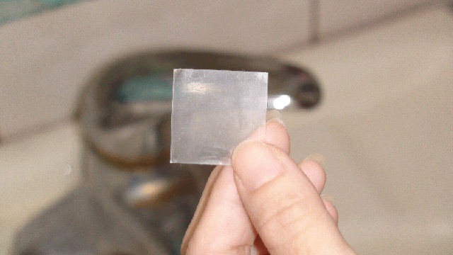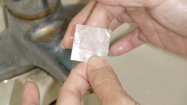 把沾滿肥皂搓洗過的魔利貼,放到水龍頭下,好好的清洗一下!