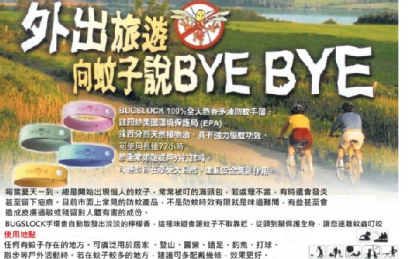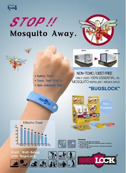 韓國著名流行防蚊手環 BUGSLOCK,註冊於美國環境保護局 (EPA),採百分百天然植物油,具有強力驅蚊功效,功效長達12小時,對人體絕無任何毒副作用,有效防蚊,確保健康。