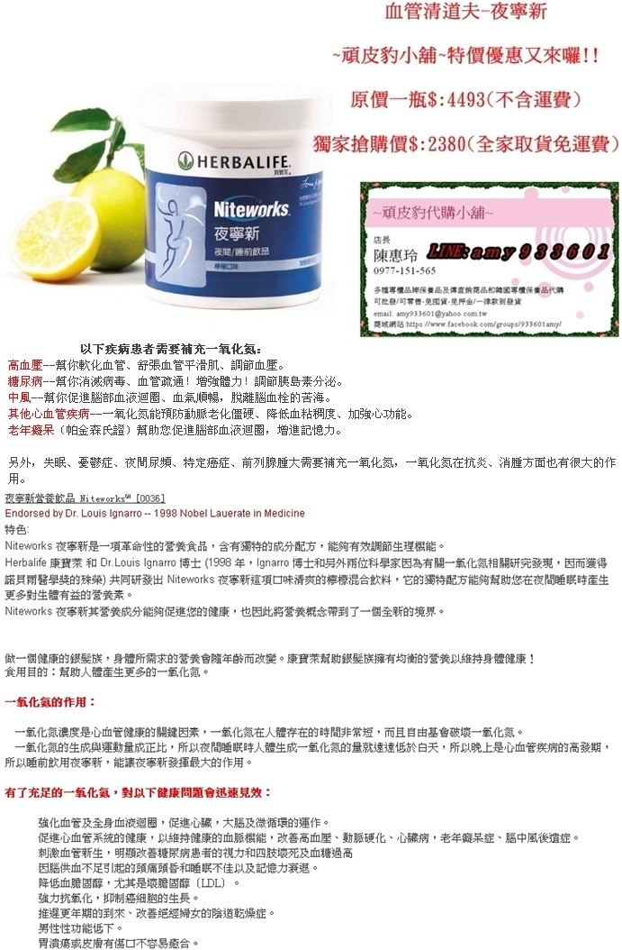 血液透過動脈循環流動 , 可為身體內的每一個細胞供應氧氣和養分 , 使它們發揮最佳功能 , 從多位科學家 ( 包括 Ignarro 博士 )的研究結果 , 已證實一氧化氮的製造是確保正常循環機能的一大要素。而一氧化氮的數量會隨著年紀增長而逐漸降低。Niteworks 夜寧新是*****獨家調配的氨基酸 , 通過人體幫助增加一氧化氮的數量 , 以維持健康。