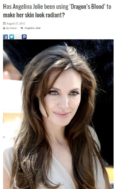 國外因安潔莉娜被celebitchy媒體報料使用龍血素維持青春童顏後,龍血素開始在好萊塢大熱!