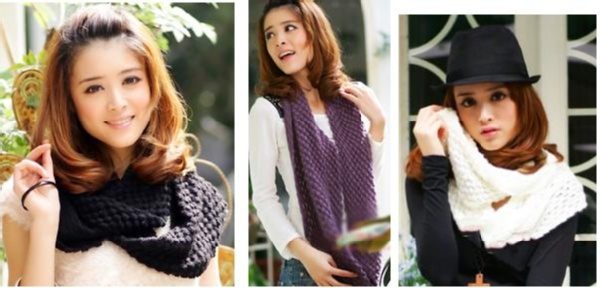 這款圍巾的賣點就是可以做不同的造型,達到百變的效果,