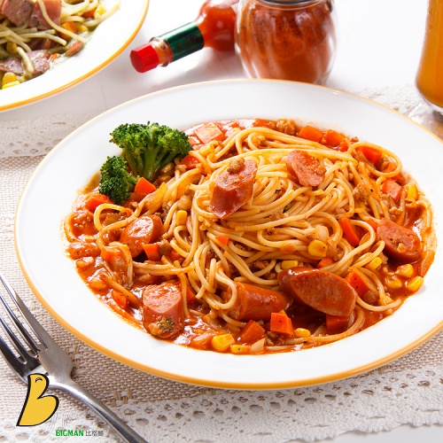 合購介紹 茄汁肉醬德式香腸義大利麵試吃價39元~ | 比格洋食館