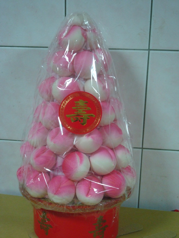 由小小壽桃堆成的,一支只要500元。運費需自付唷!