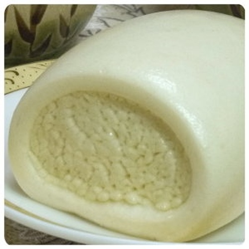 外面一圈白色,中間一團別的顏色(黑糖or南瓜色),完全不見絲,味道也和白饅頭差不多