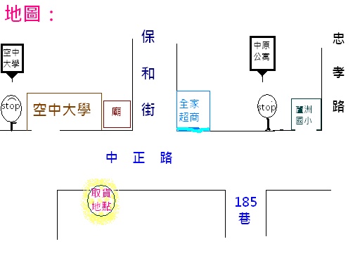 取貨地點為~中正路223號(近中原公寓站) 華山基金會的騎樓