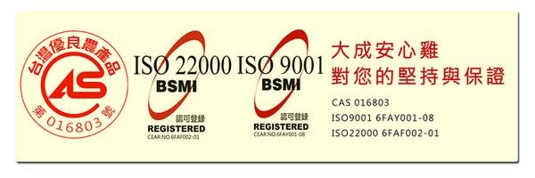 大成所提供的雞肉,具有溯源安心的保證。每一隻大成安心雞都是通過嚴格的66道品管流程,讓您可以享有品質保證的雞肉產品。