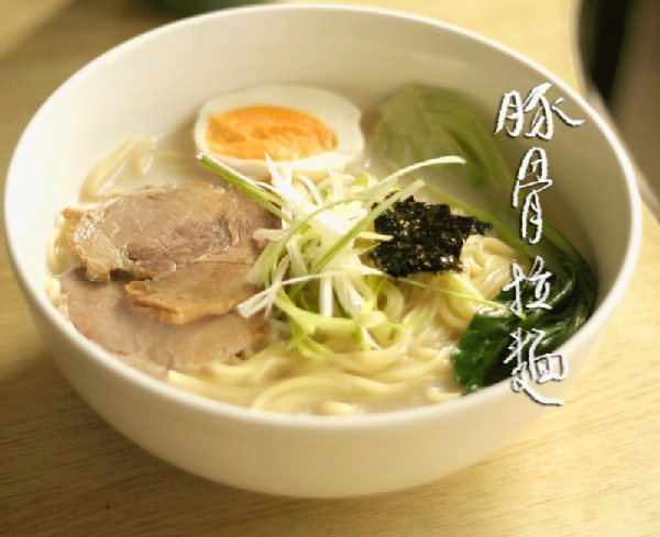 [豚骨拉麵]是用豬骨以大火長時間熬煮出乳白色濃湯,因而又叫[白湯],加上蔥、蒜、麻油調味的湯投以及咬勁十足的日式拉麵,濃厚的口味叫人讚不絕口。