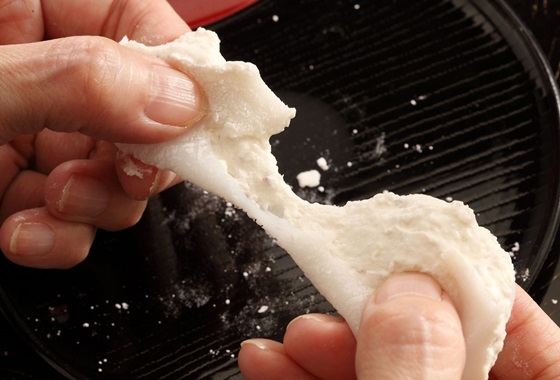 超級Q彈的麻糬外皮,就跟起司一樣會長長的牽絲,一口咬下散發出的淡淡米香跟軟Q帶勁的口感,絕對讓你一吃成主顧!