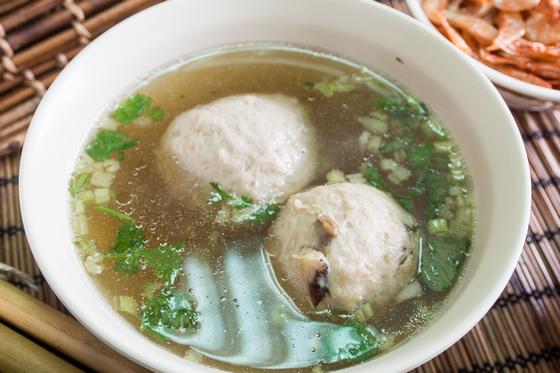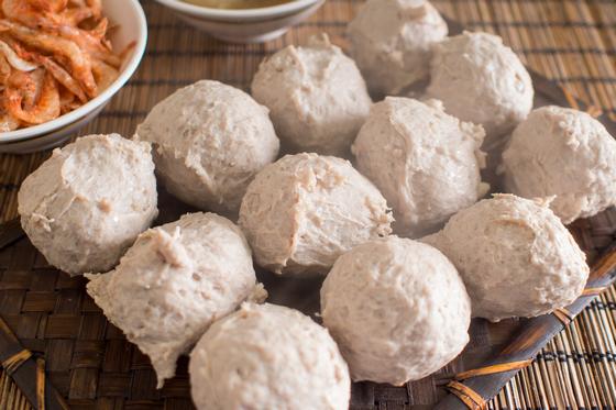 除了煮湯以外,體積夠大的貢丸甚至可以用電鍋蒸熟食用 ,剛起鍋的貢丸Q勁十足,咀嚼幾下發現,鮮甜的肉汁在口腔裡瞬間爆開,且愈嚼愈香,不小心鐵定爆漿,且鹹度調得恰到好處,即使不沾醬也好吃的美味,令人深深著迷。