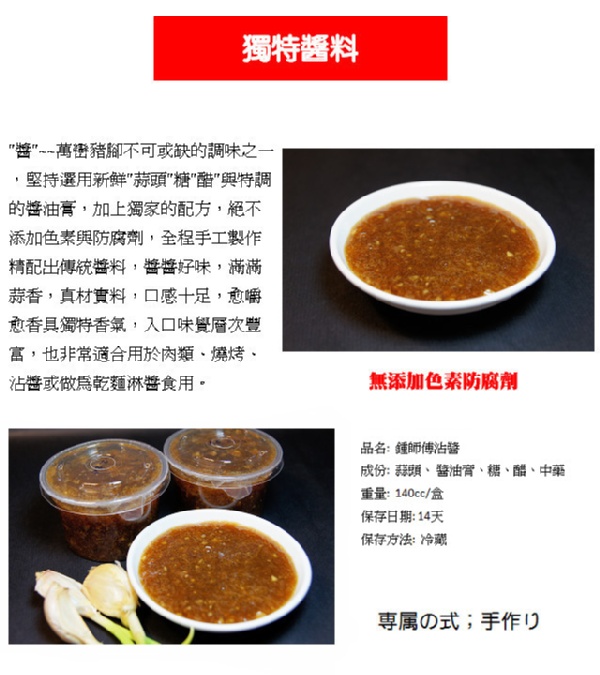 ◆商品名稱:【鍾師傅萬巒豬腳】 。
