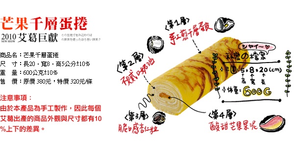 另有千層蛋捲與布蕾蛋捲雙拼的組合價(含運)只要690元即可享用到!