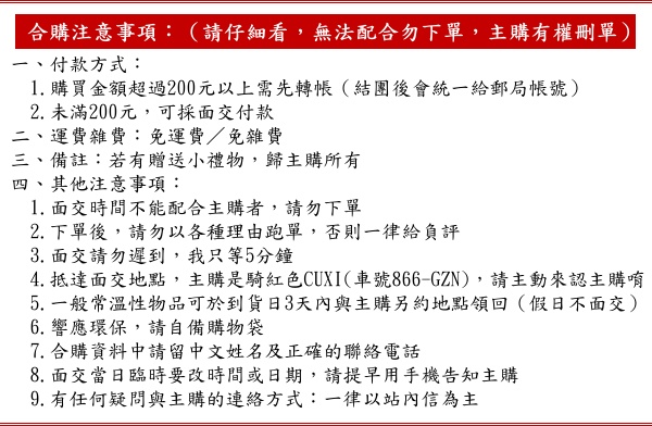 ※為方便團友,此團特別開放【面交付款】,跑單者一律給負評