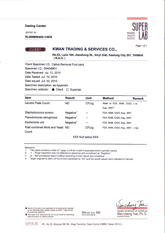 3.使用方法:將足部洗淨(最好是沐浴完後,角質較為 軟時,效果更加),敷在腳上45-60分鐘, 約4-7天後,腳底的厚腳皮即會慢慢脫 落。
