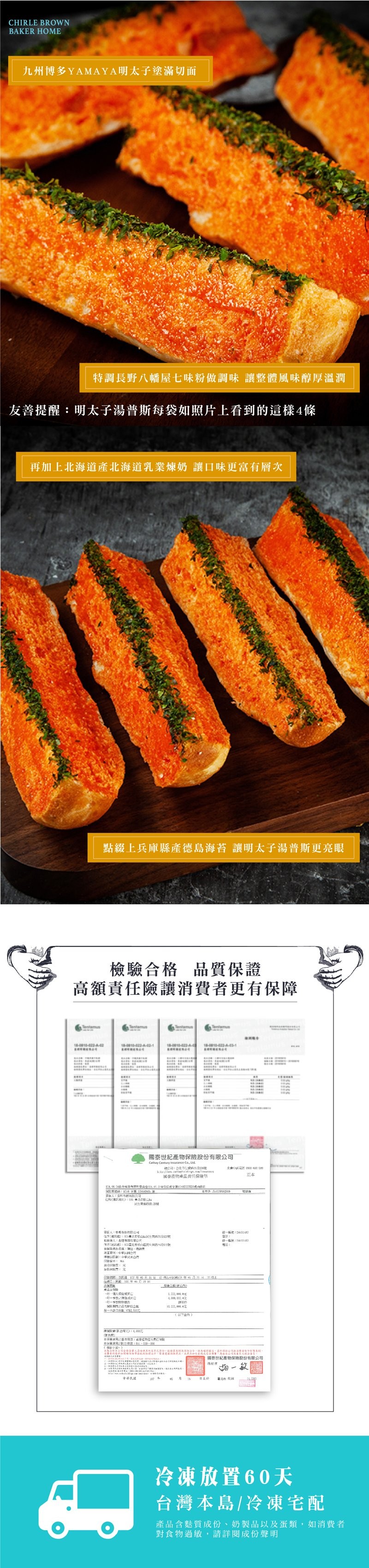 預定8/13(四)※許願嘗鮮x下單再9折《免雜❤【查理布朗烘焙】明太子湯普斯(4條/袋)㊝160元❤嚴選食材㊣用料實在》咖金來摻一咖!! | 【查理布朗烘焙】明太子湯普斯4入