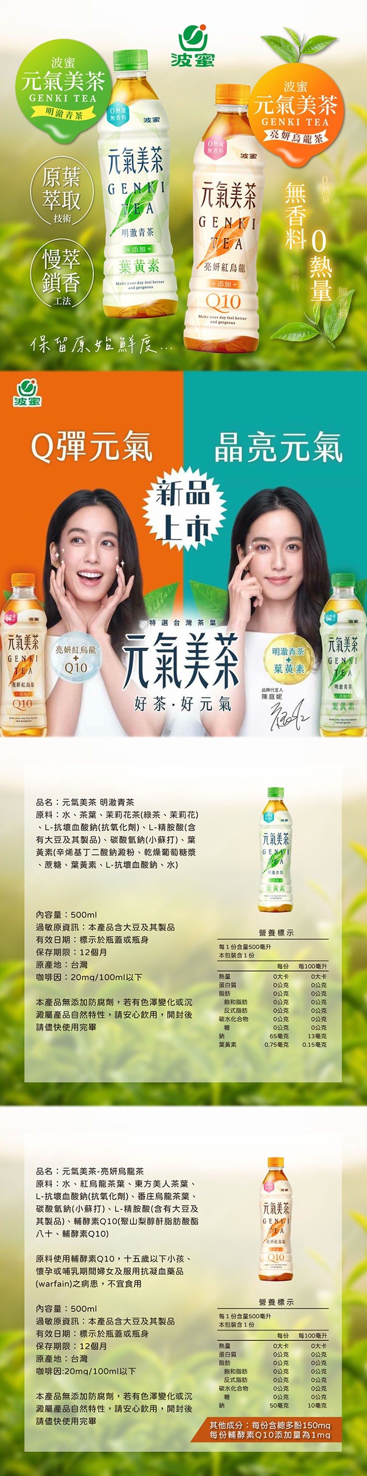 免運 【波蜜】元氣美茶-亮顏紅烏龍Q10/明澈青茶葉黃素 500gX24入/箱