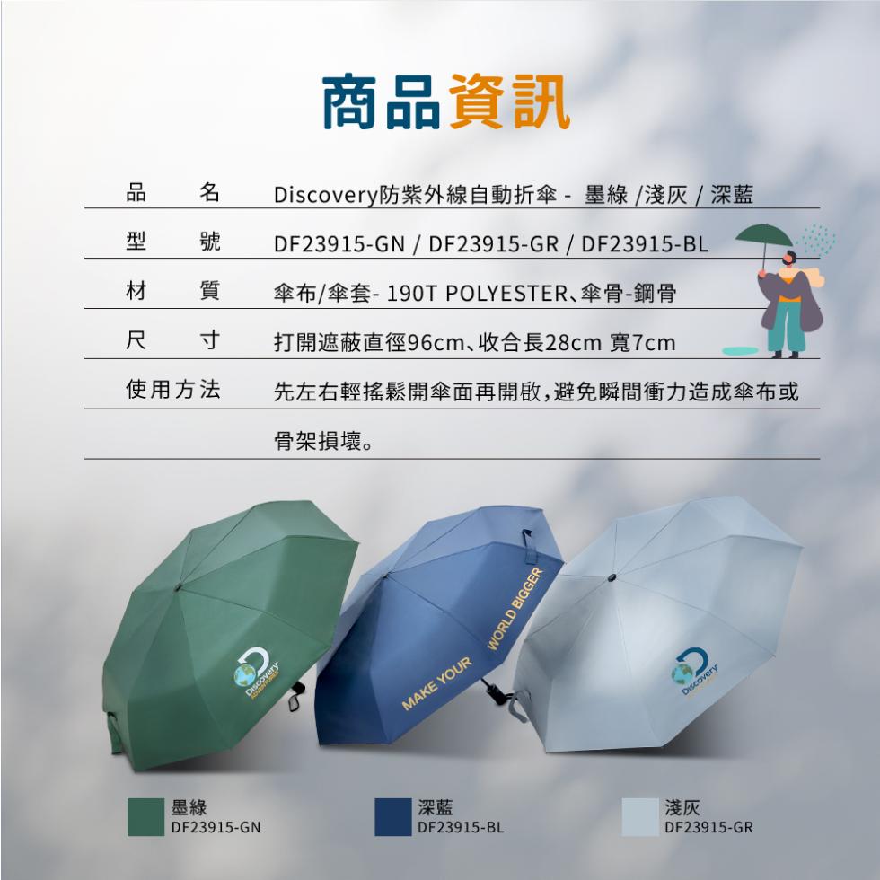 免運 【Discovery Adventures】防紫外線自動折傘含傘套-綠/藍/灰三色可選