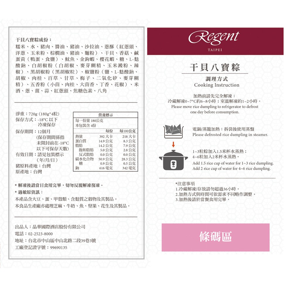 冷凍:冷凍-18℃,12個月