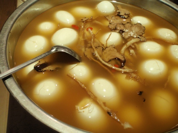 這是由我們自己家族的祖傳中藥配方調製的酒釀蛋,