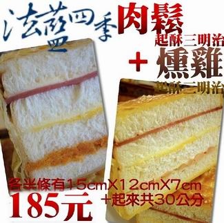 不用擔心,冠軍商品 ~「起酥火腿三明治」、新商品 ~「燻雞起酥火腿三明治」各半條,兩種口味一次滿足您!