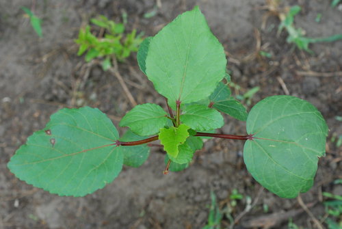 洛神生命力很強韌在颱風期間大一直吹它就順勢繼續生長,期間也沒見過蟲和病,不做有機都覺得太不自然了。
