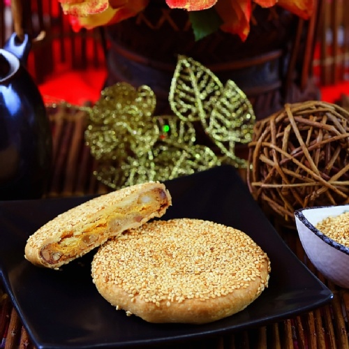 傳承北部老師傅的手藝 為北部傳統肉餅經典代表作 為古早味肉餅創新 嚴選上等豬肉搭配冬瓜糖 及杏仁粒豆 添加起士乳酪粉芝麻提味 紅土熟成鹹蛋黃 經過特殊手法處理 酥香而不甜膩的餅皮獨特奶油風味符合大眾喜愛 品嚐一口