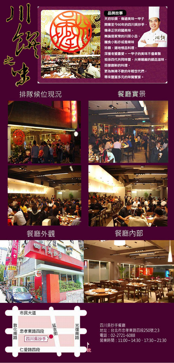 四川吳抄手【川饌】從台北市6千多家餐廳入選前50大美味金饌餐廳,美味掛保證。