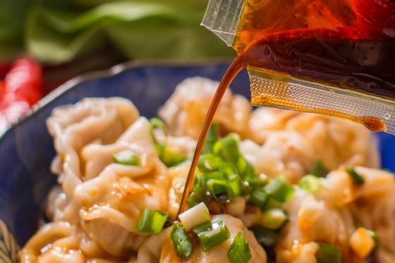 ★抄手醬汁以慢火熬煮4小時至滾燙,才加入花椒粉中攪拌,花椒粒的麻、辣椒的辣,紮實的天然醬料一吃便知道!