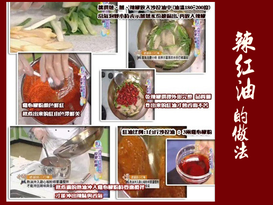 紅油醬料成分:甜醬油、辣紅油、蒜泥、花椒粉