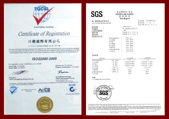 通過ISO22000及台灣HACCP食品國際標準認證,SGS檢驗合格,讓您吃的安心,品質有保證,本產品已投保6000萬產品責任險,請安心選用。