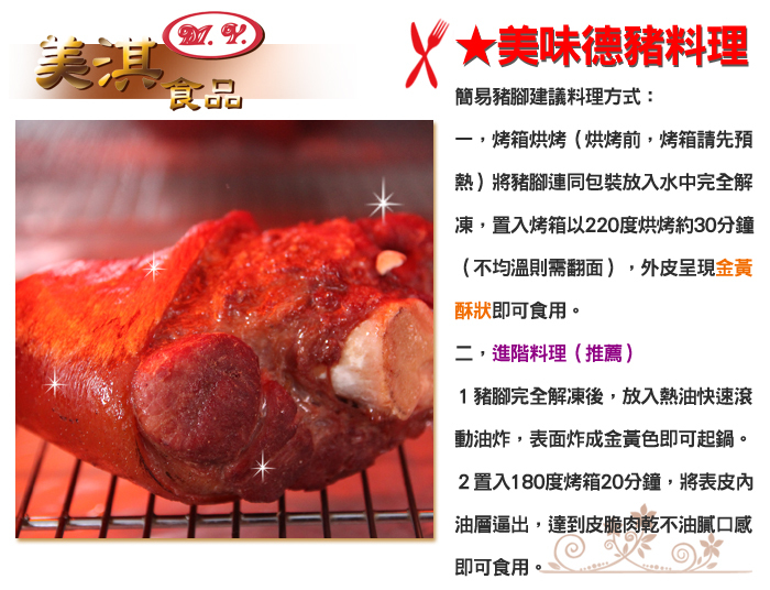 | 嚴選特大隻豬腳700g-850g,鮮嫩多汁肉超多喔 |  | | 冷凍-18℃以下,約180天 | |