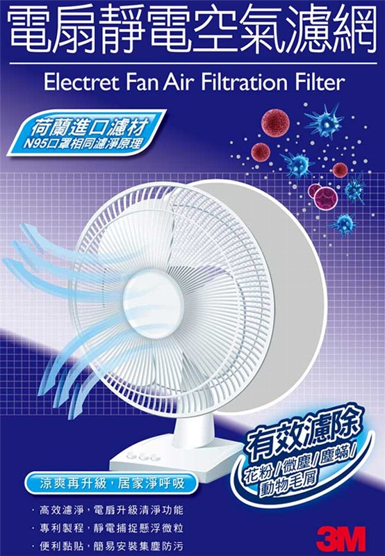◆ 簡易方便︰無須剪裁直接將濾網黏貼於風扇背面,可升級電風扇設備