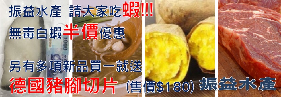 1200g(冷凍袋裝) 買就送德國豬腳切片500g 12/30止 | 單邊肚洞 380~400g 包冰25% 買一送一德國豬腳切片12/30止 | 500g±10% 買就送270g 鮭魚 12/30 止限量50份 | |