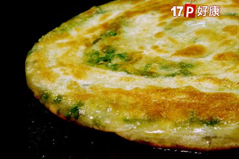 厚實蔥油餅中青蔥與麵粉的厚實黃金比例,深具嚼勁,