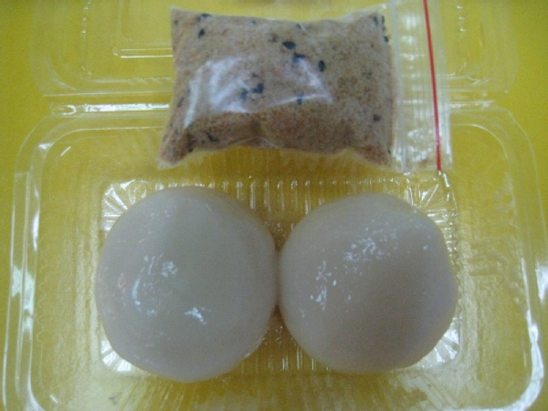 2.糯米粉製成:只能煮起來馬上吃,放置15分鐘,很死硬!